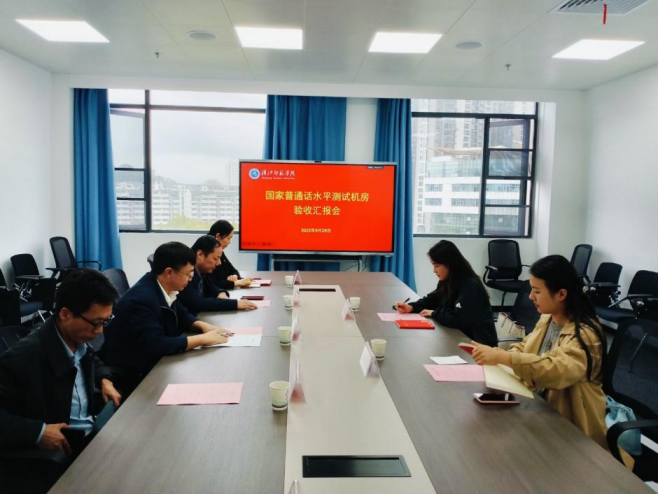 本次验收由湖北省普通话培训测试中心专家组负责,教务处及普通话测试站相关负责人参加。专家组实地考察了测试机房的整体布局、软硬件设施、候考室、信息采集室、候测室、测试室等功能区域,重点检查了考试流程、监控系统、信息采集系统、智能叫号系统等关键环节,对学校信息化建设工作给予高度评价。