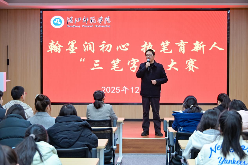 12月7日下午,由教务处、国家语言文字推广基地主办,文学院、书法文化研究中心承办的“翰墨润初心,执笔育新人”2025年“三笔字”大赛决赛在求真楼举行。党委常委、统战部部长王进出席并讲话。他指出,“三笔字”是师范生从事教育教学的基本功,是铸牢中华民族共同体意识的重要载体,更是传承中华文化的时代责任。他希望同学们:一要夯实基本功,练就扎实书写技能;二要铸牢中华魂,体悟汉字之美、文化之深,增强文化自信;三要当好传承人,从自身做起,融入日常生活,把字写正确、写规范、写美观,自觉传承这一中华优秀传统文化瑰宝。