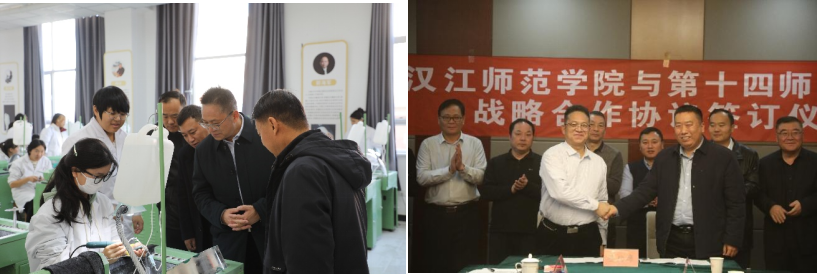 肖德校长一行还与实习单位负责人座谈,走访新疆工业学院、新疆工业职业技术学院,与十四师昆玉市签署校地合作协议,并看望部分在疆校友。